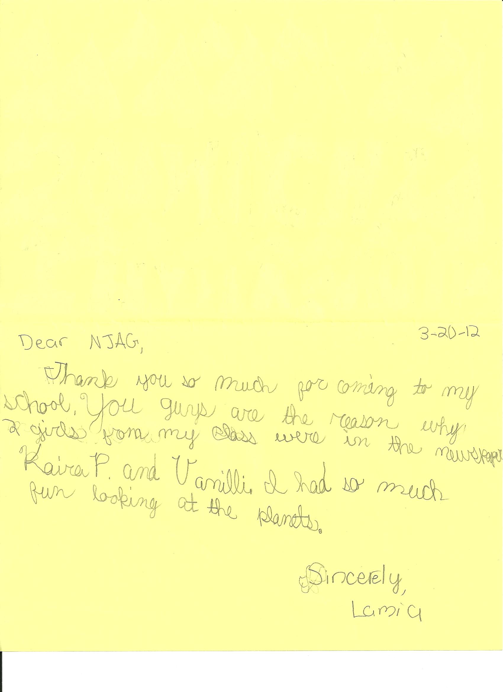 Here a bunch of thank you letters NJAG received after helping School Four of Clifton, NJ with an astronomy night. They are fantastic.